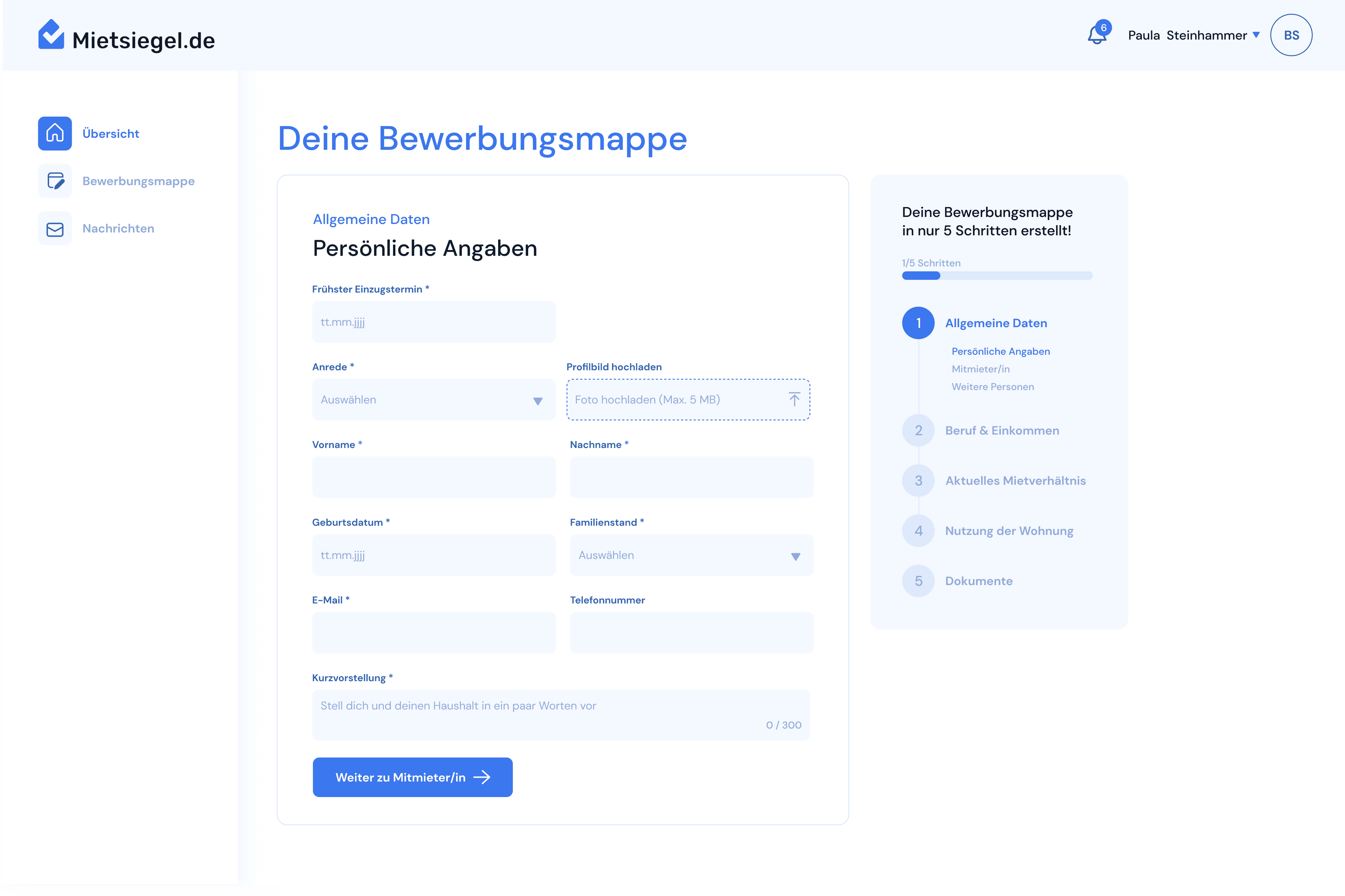 Mit mietOK.de kannst du eine hochwertige Bewerbung erstellen & hast mehr Kontrolle über deine Daten.